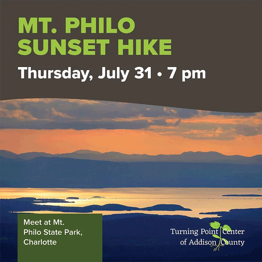 The group will plan to hike rain or shine, however, in the event of thunder/lightning storms events may be postponed or cancelled. Communications will be made on the Turning Point of Addison County website and our Facebook page.
